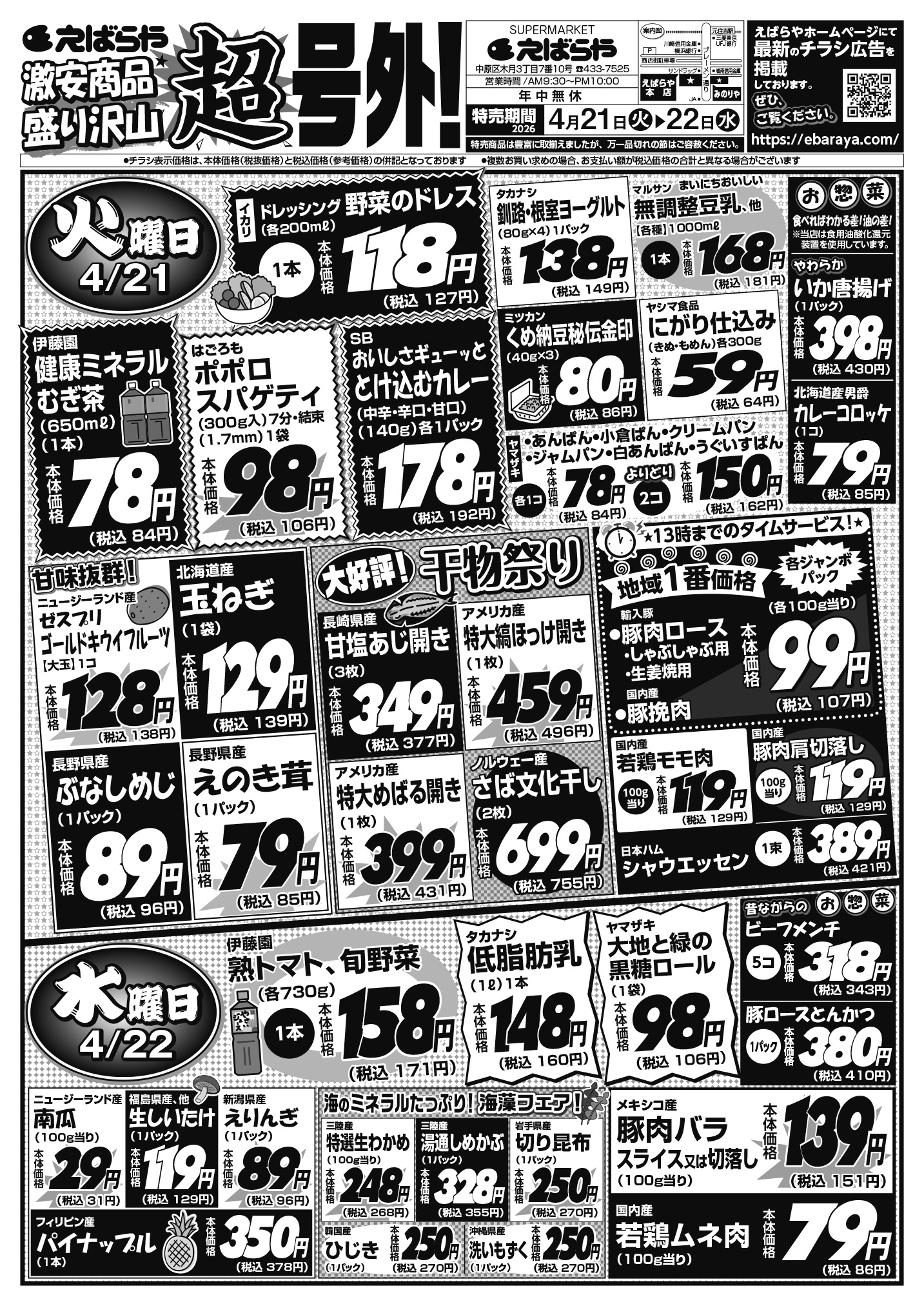えばらやは、真⼼サービス川崎市元住吉No.1⽣鮮スーパーです
